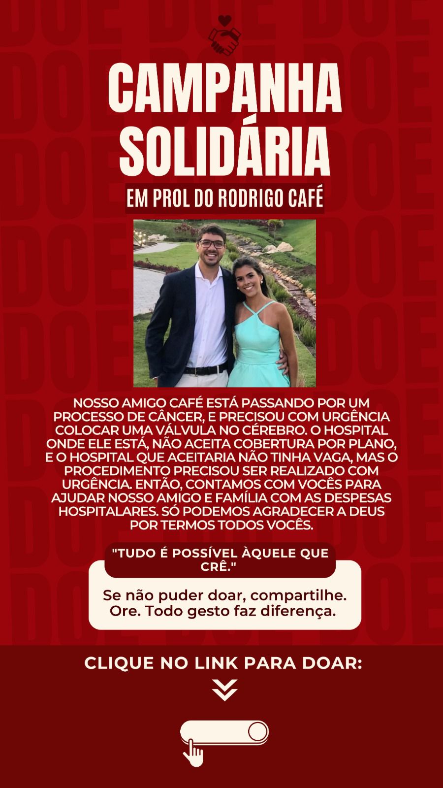 Diante disso, amigos e familiares estão mobilizando uma rede de solidariedade para ajudar com as despesas hospitalares que se acumularam com a internação e a cirurgia emergencial. “Só podemos agradecer a Deus por termos todos vocês”, diz a família de Rodrigo, que segue confiante na recuperação e na força da união neste momento tão desafiador.
